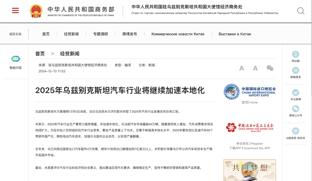 其最大(da)车(che)企UZAuto与中(zhong)(zhong)国(guo)新能(neng)源头部企业成立(li)合伙公司,接纳(na)“中(zhong)(zhong)国(guo)焦点(dian)部件+外乡配(pei)套”形(xing)式,出产新能(neng)源汽(qi)(qi)车(che)及(?ji)零部件,工场(chang)打算到2027年年产50万辆电(dian)动汽(qi)(qi)车(che)和夹杂能(neng??)源汽(qi)(qi)车(che)。